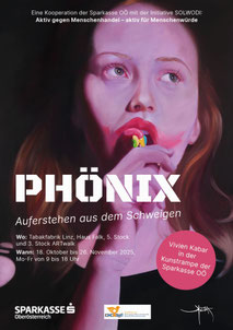 Dieses Jahr laden wir, in Kooperation mit der Sparkasse OÖ, am 17. Oktober um 18:00 Uhr unter Federführung der Kunsthistorikerin Dr. Maximiliane Buchner und der mehrfach ausgezeichneten Künstlerin Vivien Kabar zu einer Ausstellung in der Kunstrampe (Haus FALK) der Tabakfabrik in Linz ein. Anmeldung & Anfragen: https://salvatorianerinnen.at/veranstaltungen/phoenix/